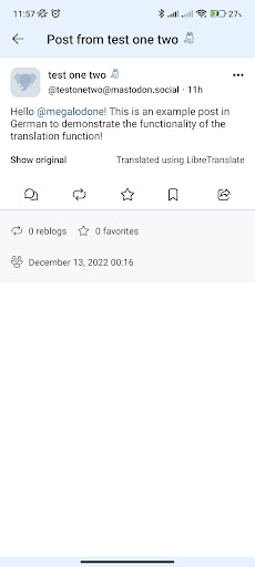 - Translation: Easily translate posts right inside Megalodon! Only works if the feature is also available on your Mastodon Web.
